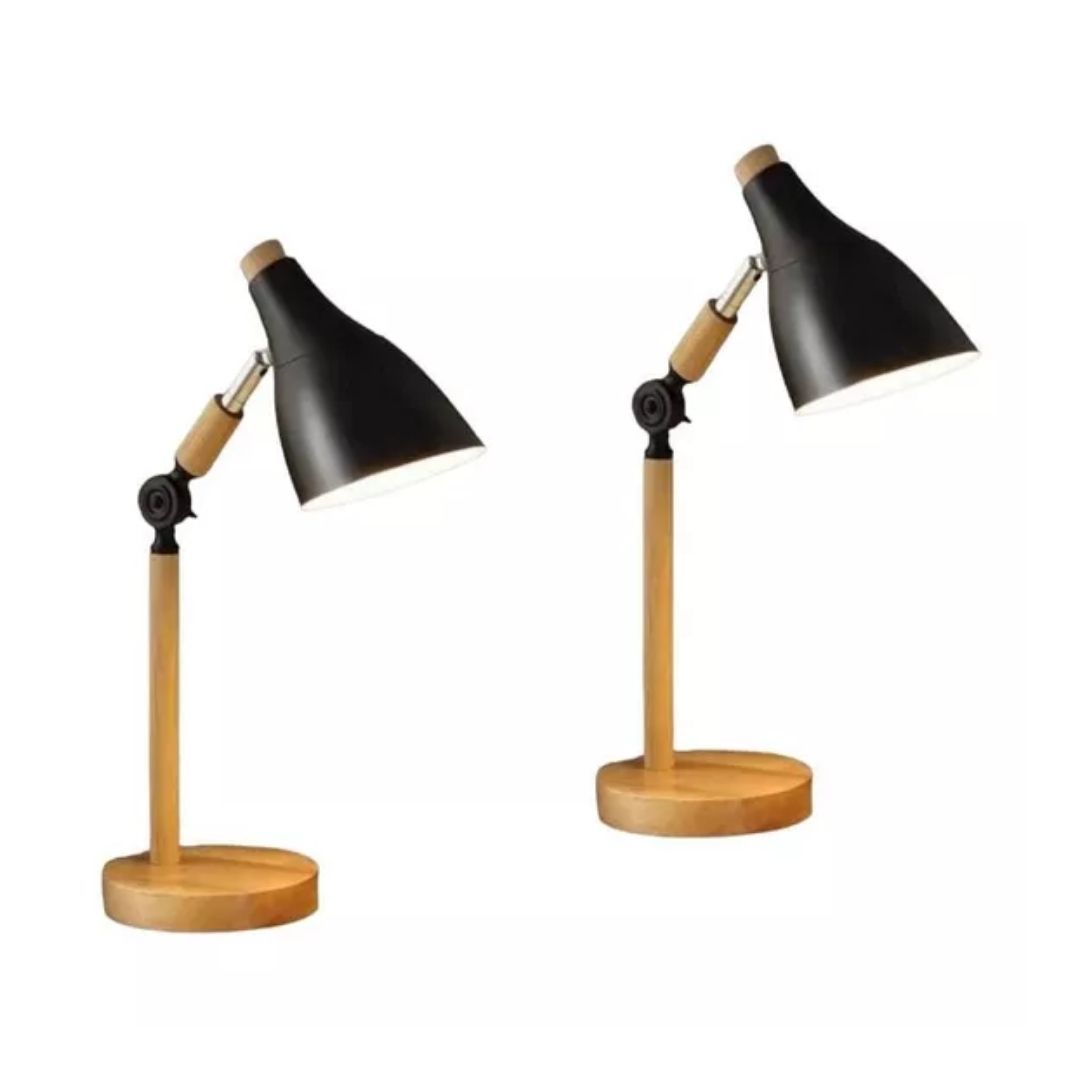 Pack X 2 Lampara de mesa estilo Nórdica Negra en metal y madera .