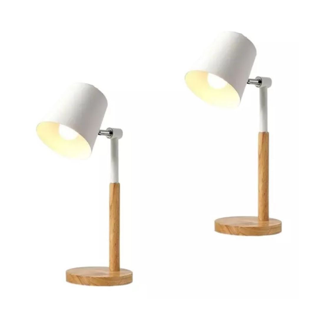 Pack X 2 Lampara De Mesa Nórdica En Madera Y Metal